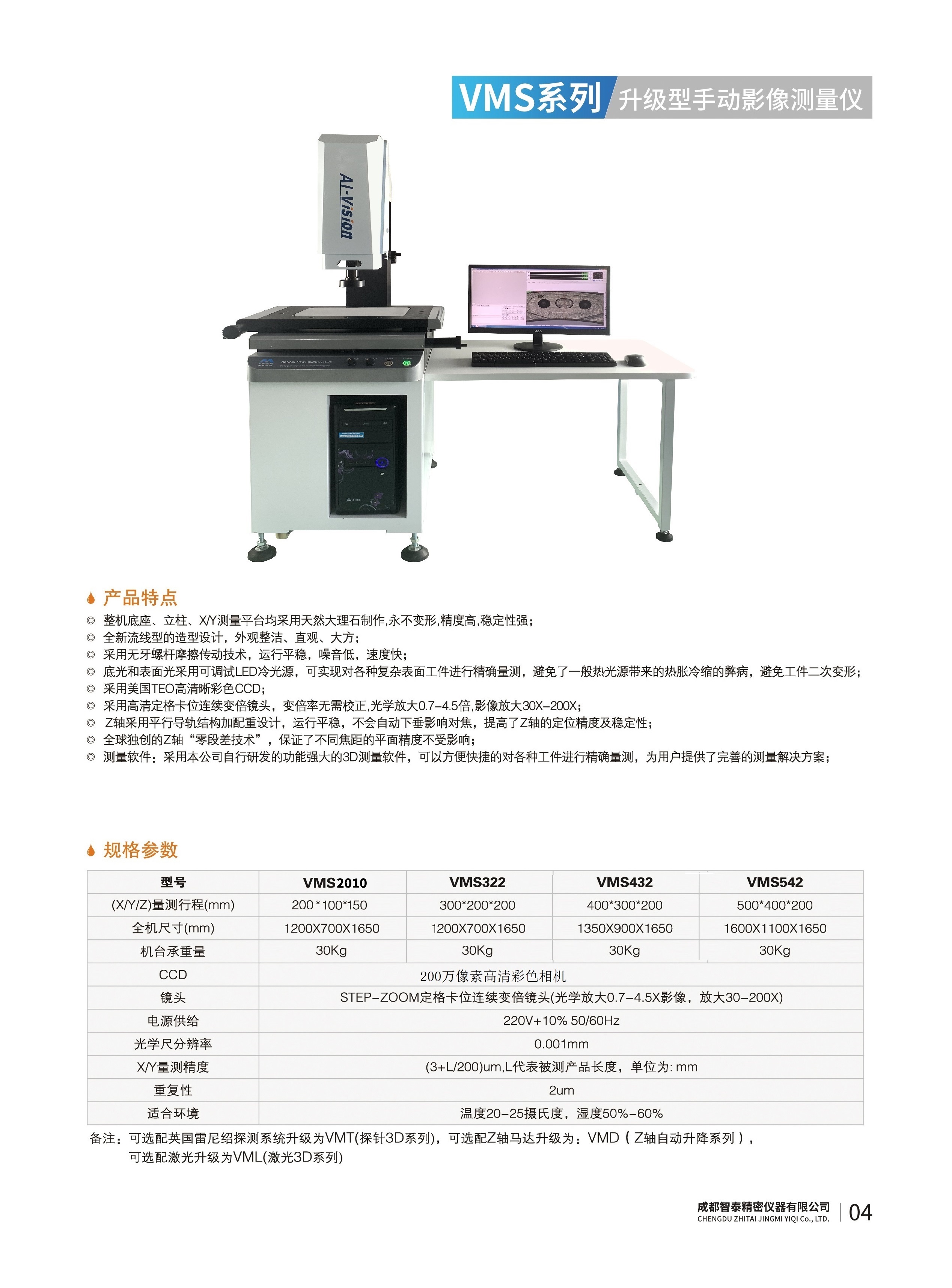 成都智泰精密儀器有限公司專注于精密測量儀器,人工智能,智能制造領(lǐng)域,專業(yè)從事智能視覺自動化檢測解決方案的貿(mào)易型企業(yè)。公司成立于2011年,位于天府之國成都,現(xiàn)有行業(yè)精英十余人,辦公倉儲面積200余平米。 公司主要產(chǎn)品為精密光學(xué)影像測量儀,精密輪廓形狀測量儀,精密機(jī)器人定位系統(tǒng),精密智能視覺尺寸檢測儀器,精密表面缺陷智能檢測設(shè)備,工業(yè)工程特種機(jī)器人。 公司憑借過硬的技術(shù)實力和產(chǎn)品方案,率先進(jìn)入智能視覺自動化檢測領(lǐng)域,推廣以精密智能視覺自動化檢測為基礎(chǔ)的機(jī)器人自動化應(yīng)用,公司不斷整合上下游的資源,擁有巨大的全產(chǎn)業(yè)鏈優(yōu)勢??蛻羧后w覆蓋了我國精密制造業(yè)的多數(shù)領(lǐng)域,包括航空、航天、軍工、汽車、新能源、光伏、食品,精密電子、精密機(jī)械、模具、PCB、LCD、五金、塑膠、醫(yī)療、教育、計量及科研院所等行業(yè)。 公司創(chuàng)新的產(chǎn)品能滿足生產(chǎn)與制造行業(yè)客戶的要求,訓(xùn)練有素的工程師能及時提供多種技術(shù)服務(wù),如解...